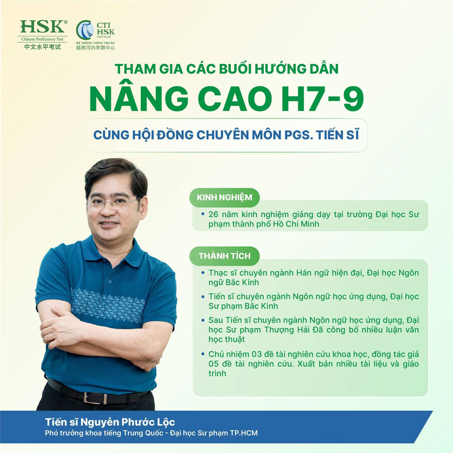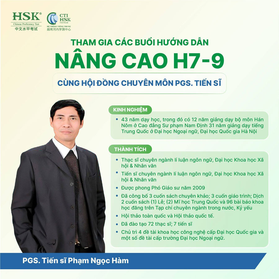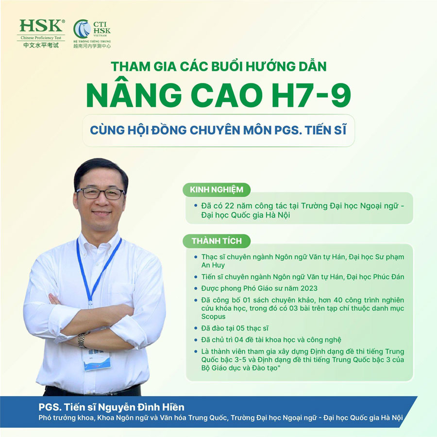 10 buổi hướng dẫn nâng cao HSK 7-9 tại CTI HSK giúp bạn phát triển 5 kỹ năng Nghe – Nói – Đọc – Viết – Dịch tiếng Trung ở cấp độ cao nhất, dưới sự dẫn dắt của các PGS. TIẾN SĨ hàng đầu trong lĩnh vực tiếng Trung